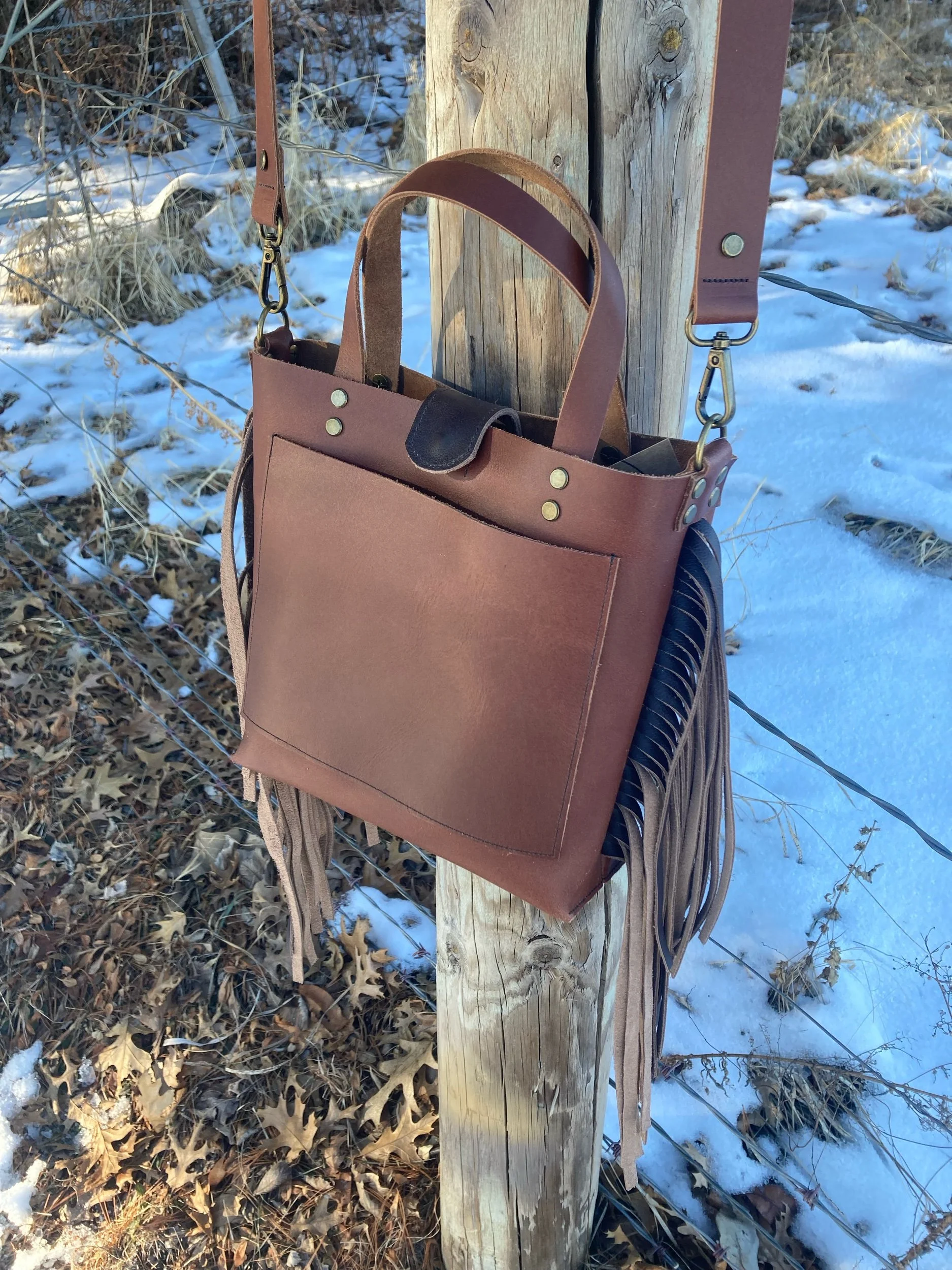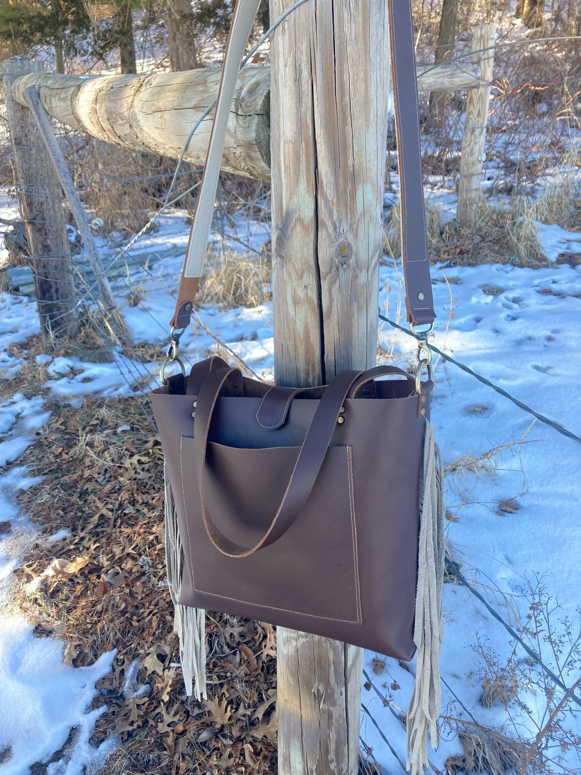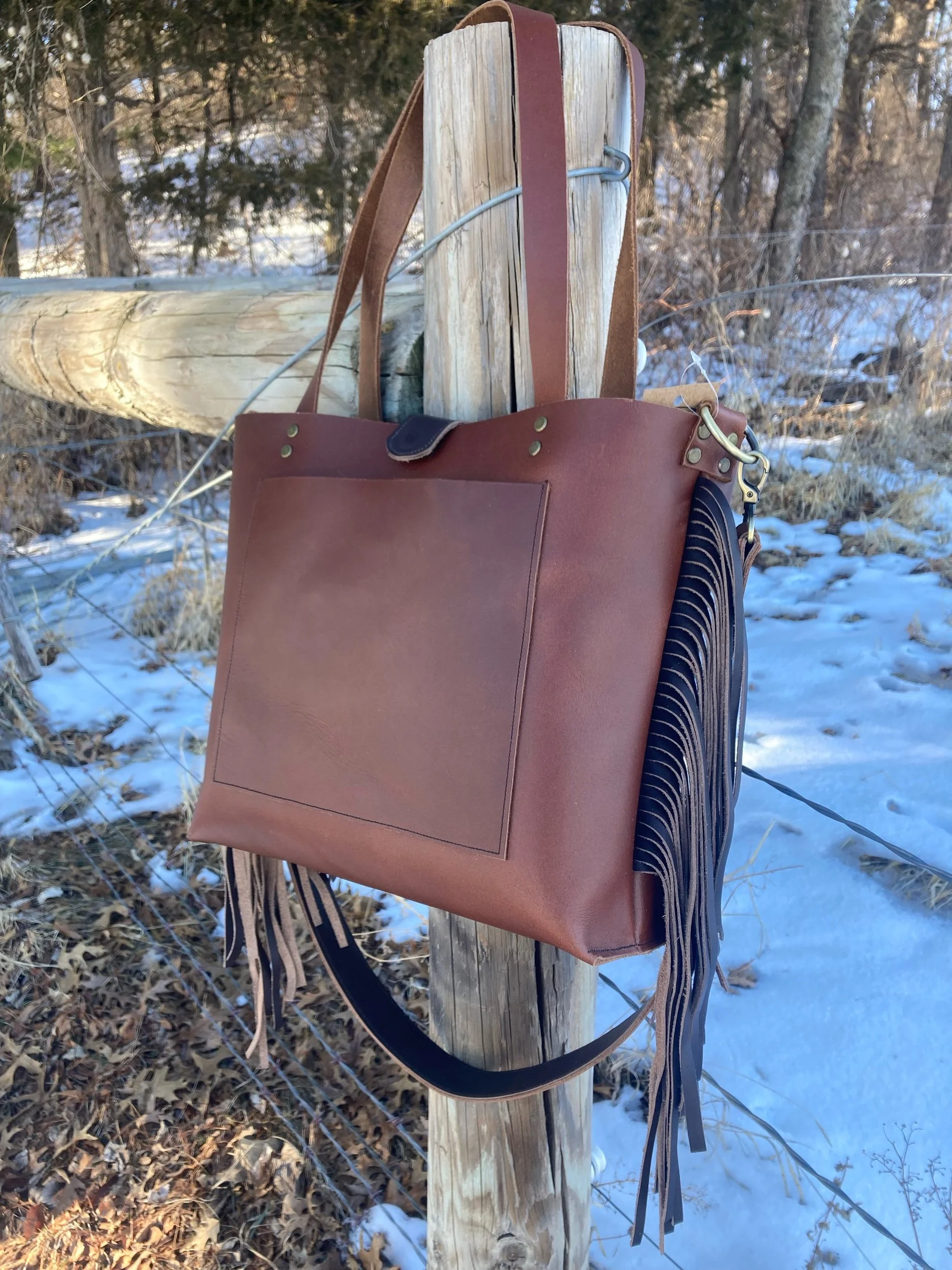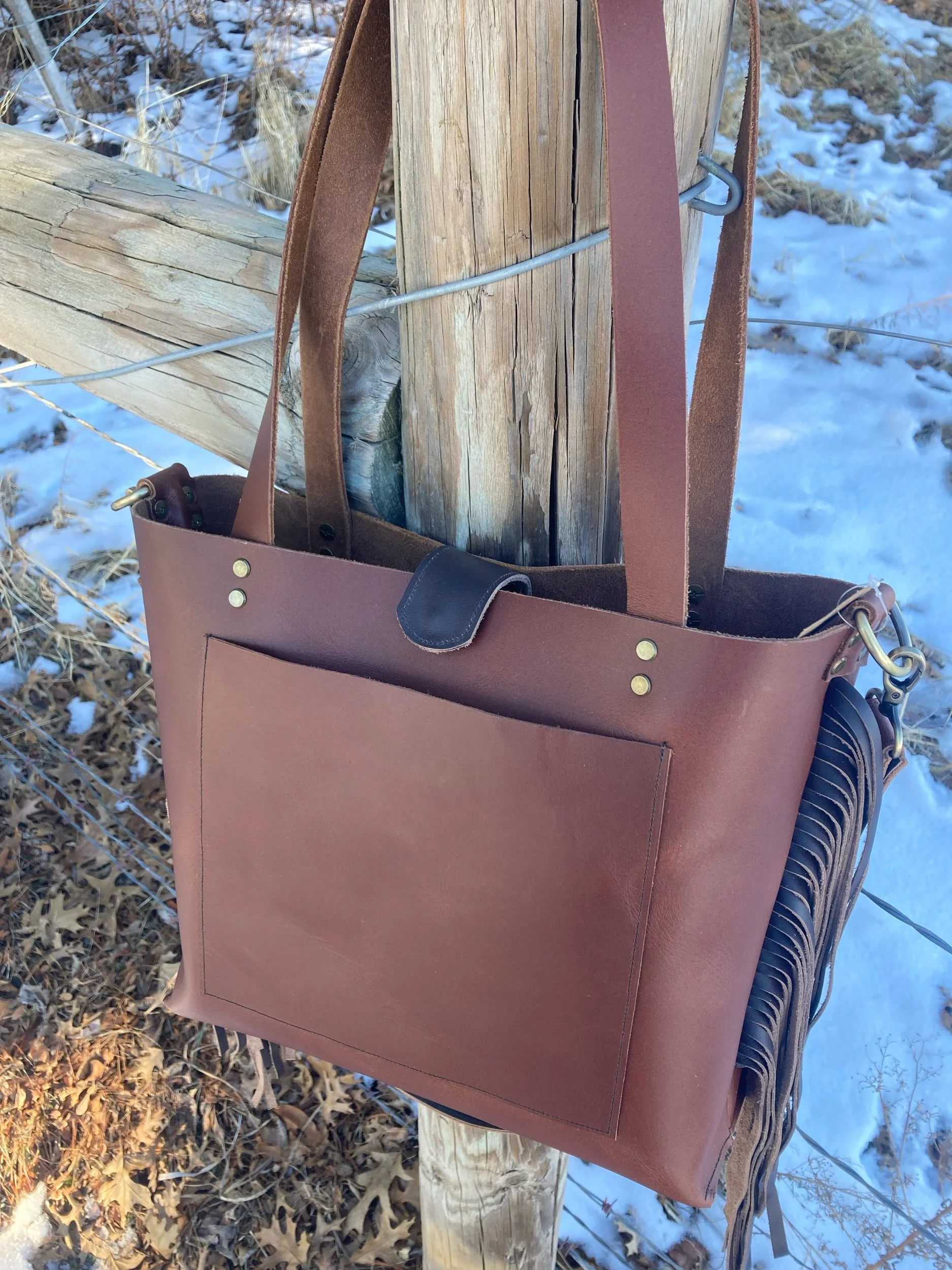 Original Cross-Body Fringe Tote- Russet Chocolate