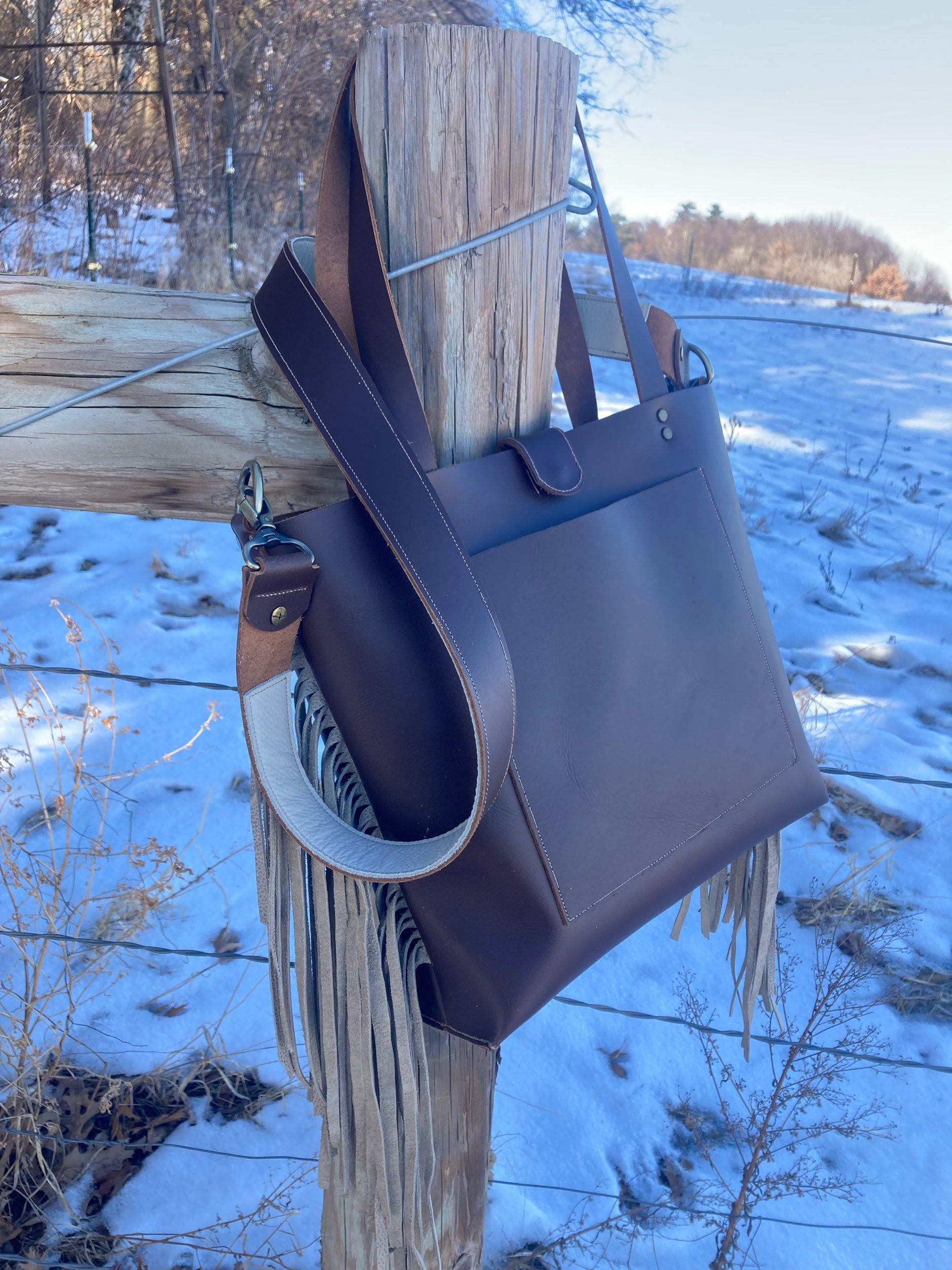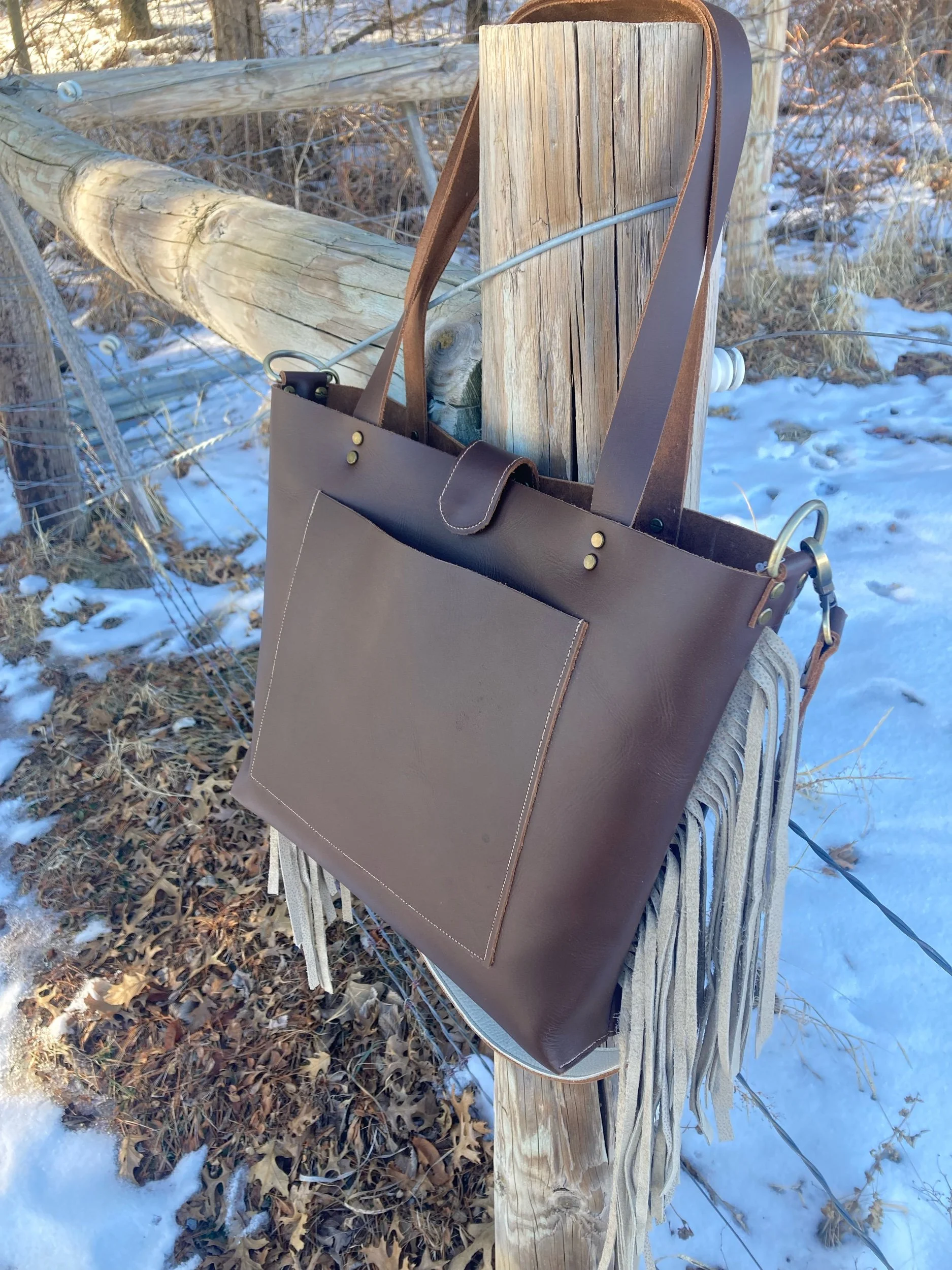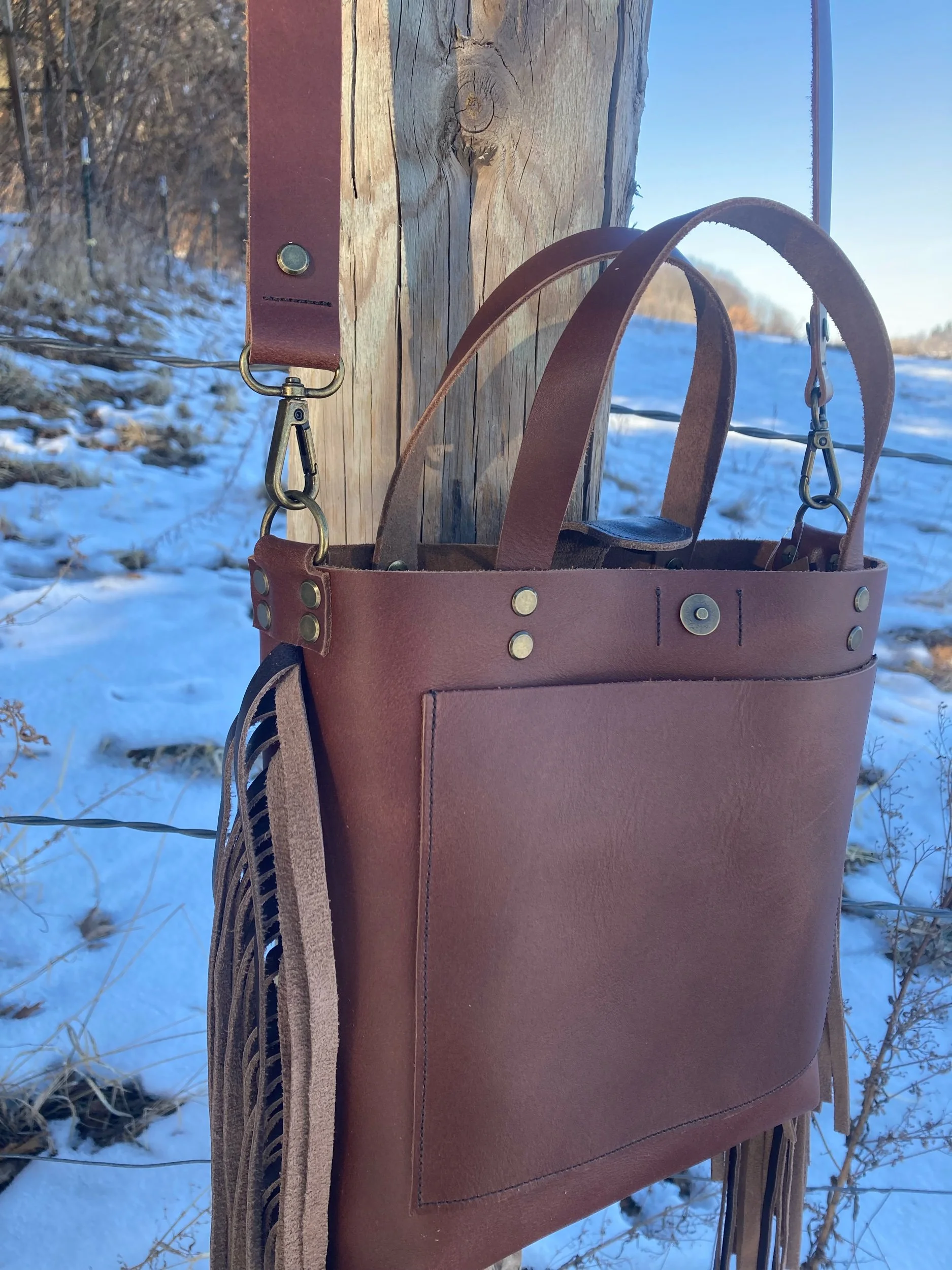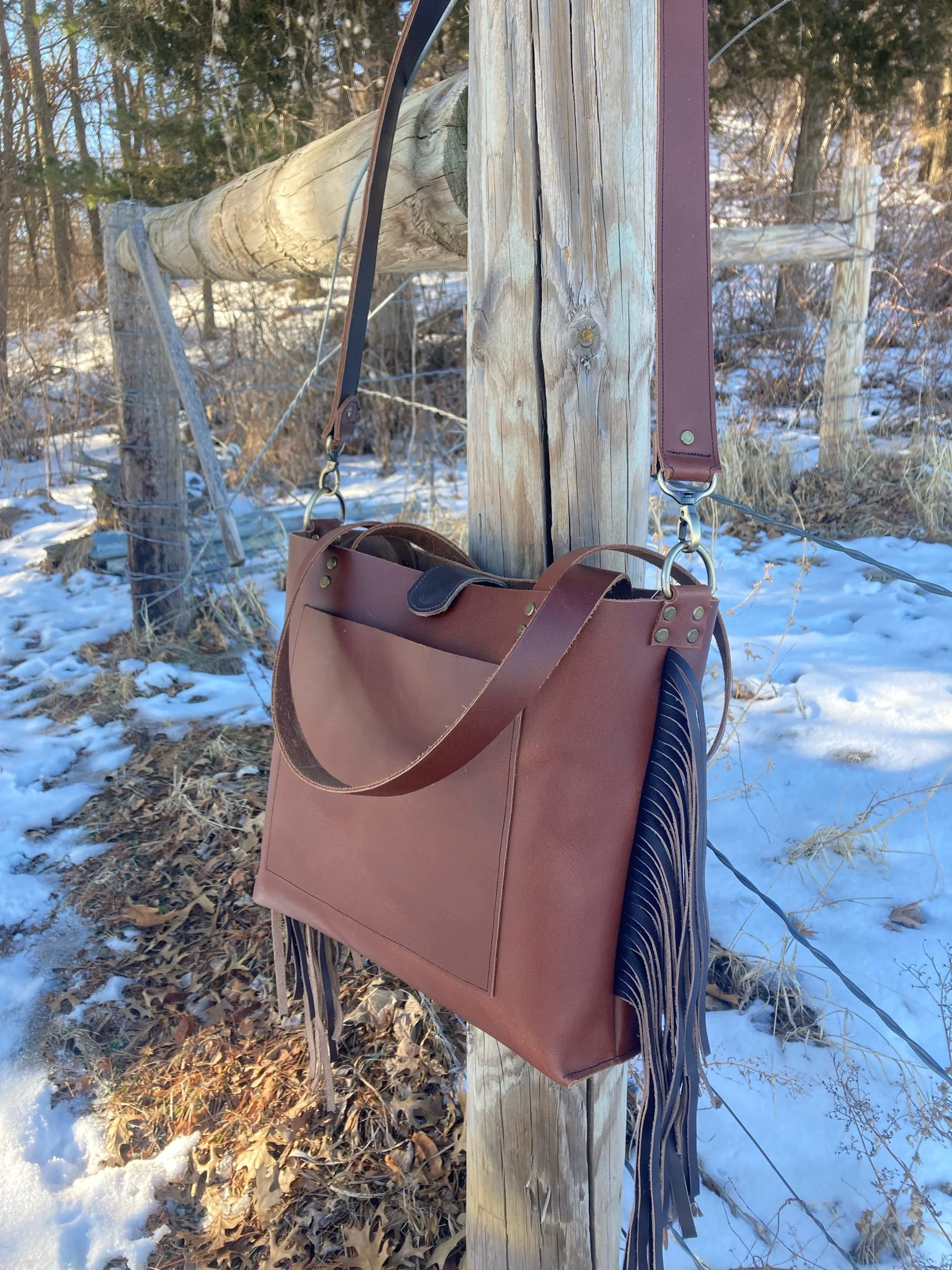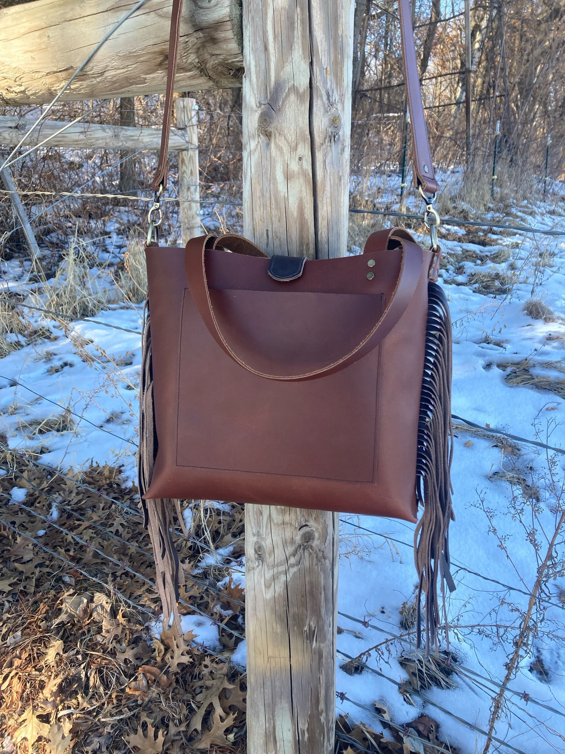 Original Cross-Body Fringe Tote- Russet Chocolate
