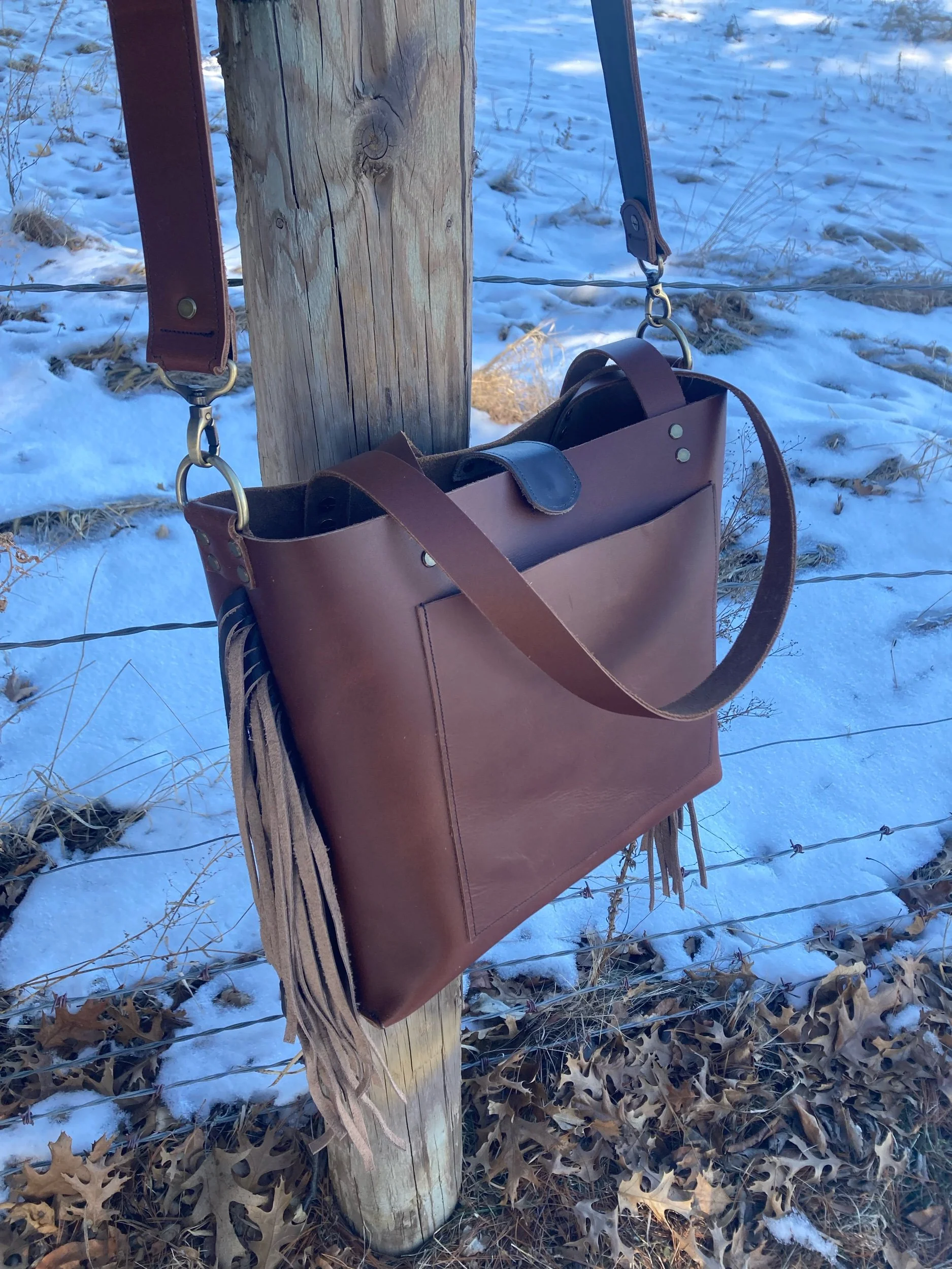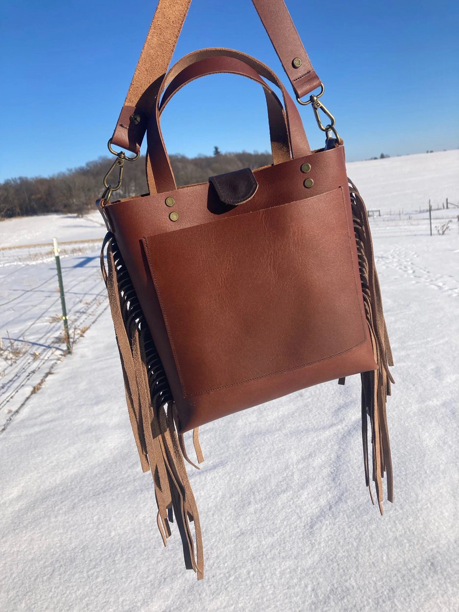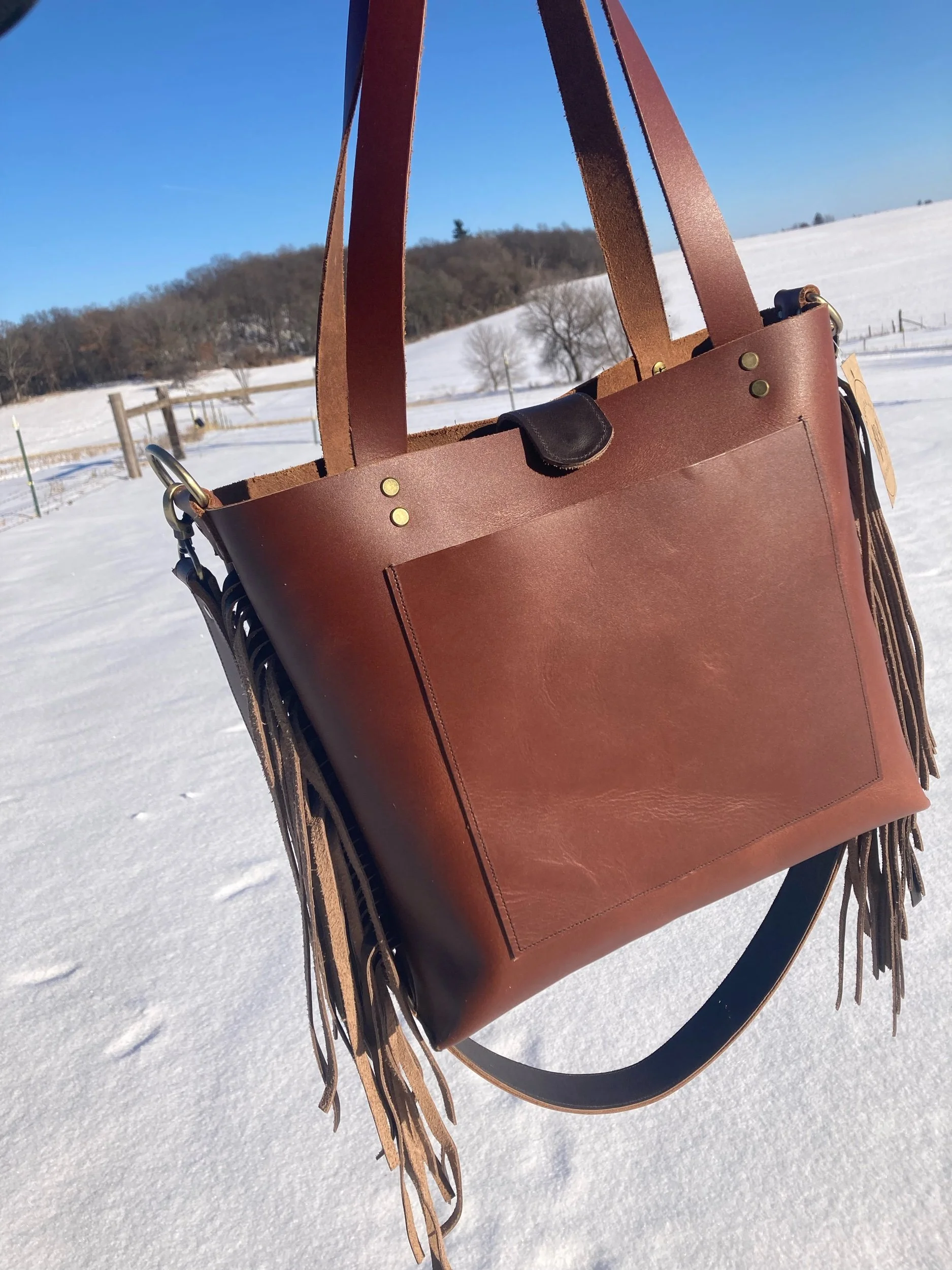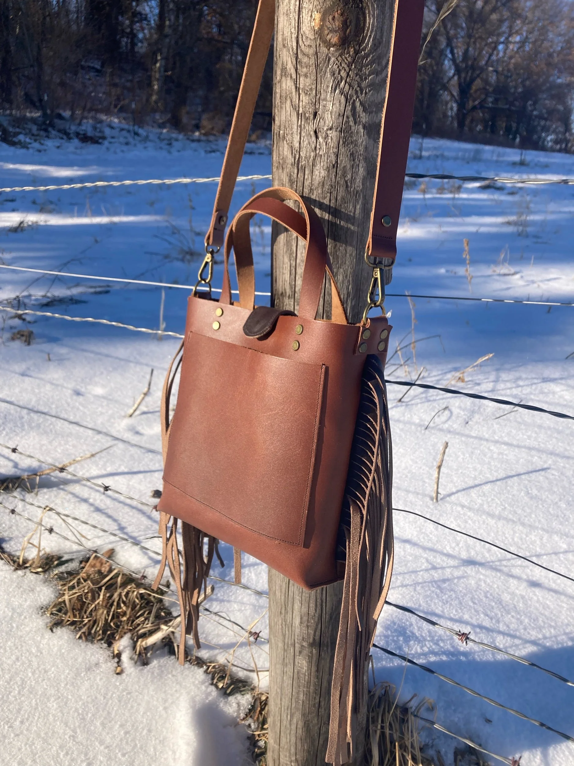 Original Cross-Body Fringe Tote- Russet Chocolate